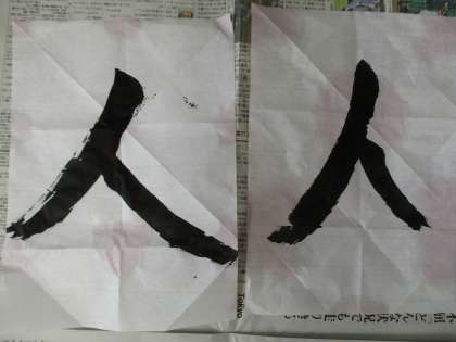 きれいに染まった半紙に毛筆で「人」と書きました。