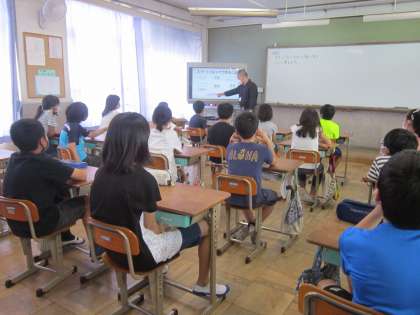 今日の3・4時間目に情報モラル教室がありました。携帯電話市民インストラクターの方に来ていただいて,スマートフォンの使い方について一緒に考えていきました。まずは,保護者の方に書いていただいたアンケートをもとに,スマートフォンを使っているか,ルールを守っているかなどをクラスごとに確認しました。予想よりも自分のものをもっている人が多かったみたいです。