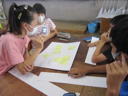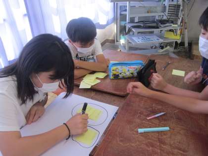 次にSNSを使ったトラブルの動画を見て,トラブルが起きないようにするためにはどうすればよいかを考えて付箋に書きました。「守れるルールを決めることが大切だよね。」「おうちの人とのルールを友達に伝えることもいいんじゃない。」と話しながら書いた付箋を交流していました。