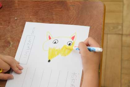 しょうかいするために えはがきを かきました。