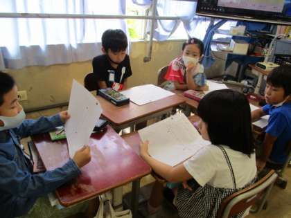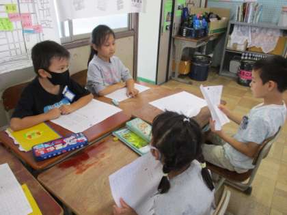 今日は1組で,こんなもの見つけたよ交流会をしました。詳しく書くために,メモしたことの順番を考えたり,メモを整理しながら書くことができていました。お友達に聞こえるように,話し方も工夫している子どもたちでした。