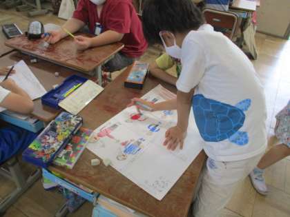 今日のかかり活動でも,一週間がたち自分たちの仕事の反省点を話し合いました。よかったところもあれば,まだまだできていないところもあったようで,自分たちでしっかり話し合うことができていました。その話し合いを活かし,かざりがかりは季節の飾りを,なかよしがかりはポスター制作を頑張っていました。