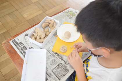 きょうは ねんどで ごちそうを つくりました。