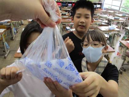 結果は,どの班の袋にも水滴がつき,どこの空気中にも水蒸気が含まれていると考えることができました。