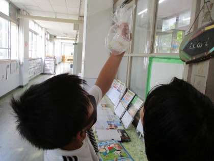 今日の理科の学習では,水蒸気が空気中にふくまれているか,保冷剤を使って調べました。予想では,コップに冷たい飲み物を注いだ時,コップの外側に水滴がついていたことから,水蒸気はどこにでもあるのではないか,前回の実験からコップに入れた水は空気中に蒸発したので,水があったところだけ水蒸気が存在するのではないか等,自分の考えをもっていました。