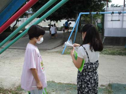 様々な場所で調べるために教室や廊下,運動場,日かげに分かれて実験しました。