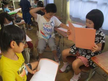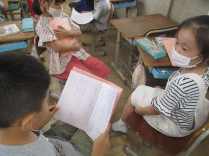 今日はどうぶつ園のじゅういを読んだ感想を書き,グループで交流をしました。どうぶつ園のじゅういさんの一日の仕事で,初めてしったことや驚いたことをたくさん書いている子どもたちでした。