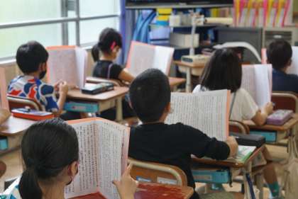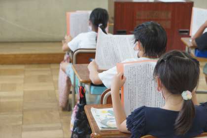 国語の音読でも,しっかりと姿勢を正すことができています。点や丸も意識しながら,はきはきと読むことができました。