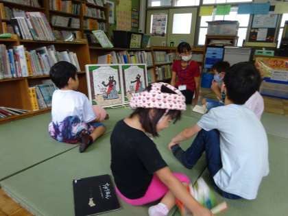 図書館司書の先生に 大型絵本を読んでもらいました。