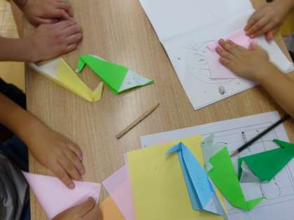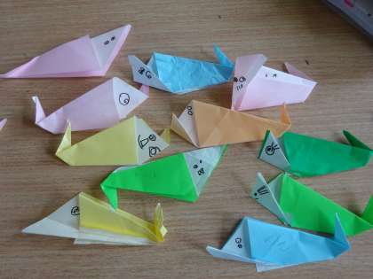1匹折ると「もっと折りたい。」という子どもたちの声。