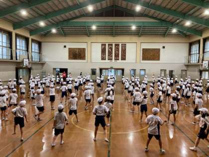 今日は,中学年で2回目のダンス練習をしました。大事なことを3つ伝えました。まず,笑顔で楽しく踊ること。2つ目は,列をそろえること。3つ目は,大きく動くこと。この3つを意識して練習しました。子どもたちは,大分踊りを覚えてきているので,動きもそろってきました。とてもいい感じだと思います。家でも時間があれば練習するように伝えています。本番で,3・4年生の息ぴったりのダンスを披露できればなと思います。