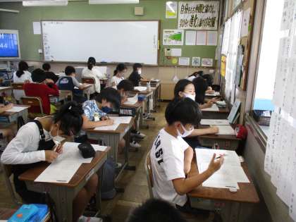 テストが始まると,真剣な表情で問題に向き合っていました。