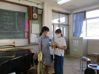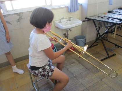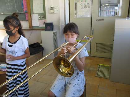 楽器紹介では6年生や先生の演奏を聞くこともでき,子どもたちは目を輝かせていました。
