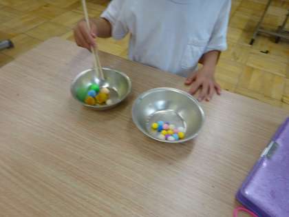 わかば学級1年 自立活動「お箸でフェルトボールをつまもう」