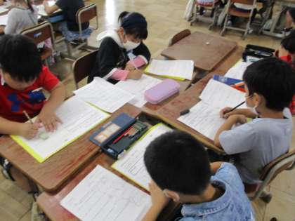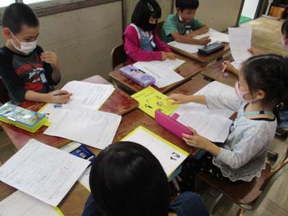 今日は町探検を終えて知ったことをワークシートにまとめました。たくさんの質問に答えていただき,いろいろなことを知ることができましたね。