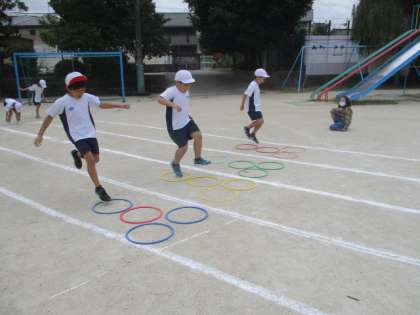今日も障害物走の練習を頑張りました。ボール入れも上達してきて,一回で入れられる子が増えてきました。
