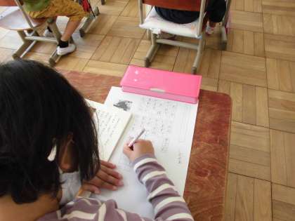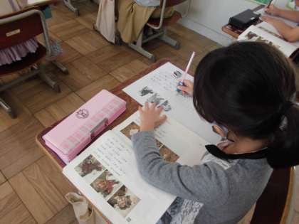 せつめいてきぶんしょう「うみのかくれんぼ」のなぞりがきや,かきうつしをしています。きょうかしょのぶんしょうに,したしんで,ことばのちからをつけてほしいとおもいます。おんどくとともにつづけていきたいとおもいます。