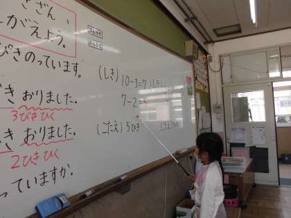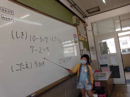 3つのかずのけいさんのしかたをかんがえました。じぶんなりにかんがえて,けいさんのしかたをせつめいしています。さしぼうのつかいかたにもだんだんなれてきました。