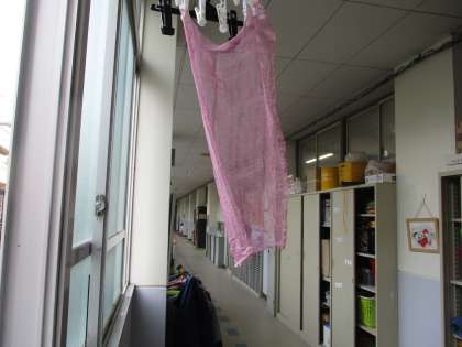 ガーゼが風に吹かれる様子を見て,秋を感じました。