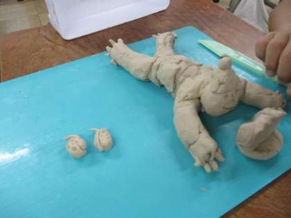 今日は図工で,粘土を使って今までの思い出を表現しました。ひねったり,丸めたりちぎったりしながら,ボーリングをしている自分や,サイクリングで自転車に乗っている自分など,思い思いの作品をつくっていました。