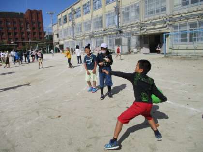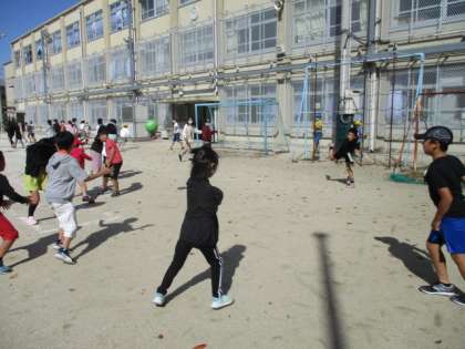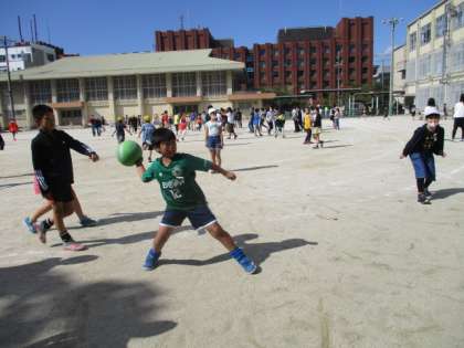 金曜日は,天気も良く,木曜日の中間休みには,2組みんなでドッジボールをしました。みんなの笑顔がいっぱいでした。