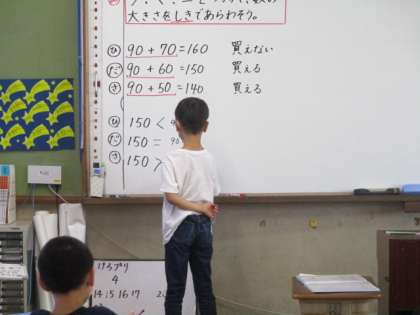 「150<90+60」は「150は90+60より小さい。」など,式と言葉を対応させて考え,自分で言葉で説明している姿も見られました。