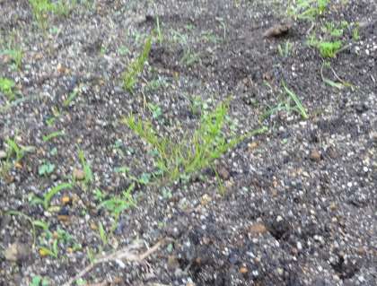 2週間前に蒔いた ニンジンの種から芽が出て
