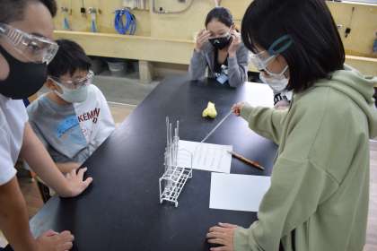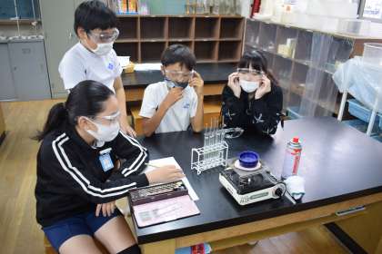 6年生の理科の学習では,水溶液の性質について学習しています。今日は,これまでの学習を生かして,炭酸水,塩酸,食塩水,アンモニア水,石灰水の五つの水溶液を区別しました。区別するために,自分たちでどのように実験を行うのかステップチャートを使って手順を考えました。自分たちが考えた手順で実験をし,全ての水溶液を区別できた時はとてもうれしそうでした。試行錯誤しながら実験することで,より学びが深まったと思います。