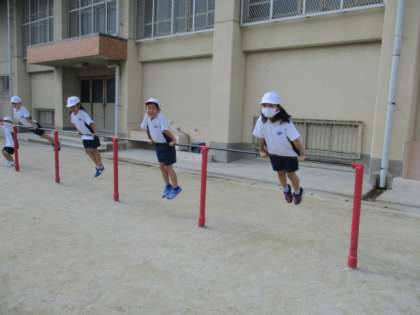 体ならしでは,上手に「つばめ」や「ぶたのまるやき」が出来ました。ペアでアドバイスをしたり,互いを褒め合ったりして楽しく学習ができました。