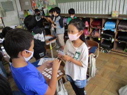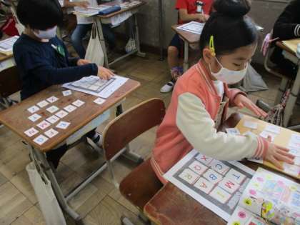 少しずつ,アルファベットの形と読み方が分かるようになってきました。今週は,ビンゴゲームをしたり,アルファベット集めをしたり,様々なゲームを楽しみながらALPHABETの大文字やその読み方に慣れ親しむことができました。