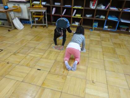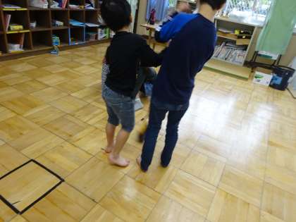 また 雑巾をもって 並んで床をからぶきしていた別の二人。