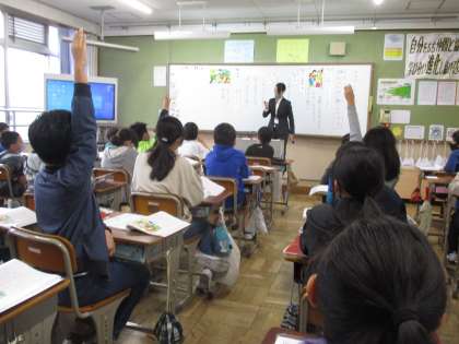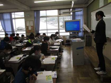 今日は,実習生と一緒に道徳の学習をしました。