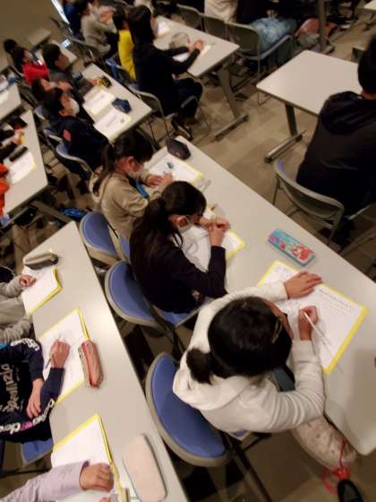 語り部さんが実際に体験された話を真剣に聞いています。地震の怖さ、恐ろしさ 当時の方々の思いに触れることができました。しっかりメモもとっています。