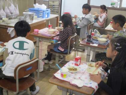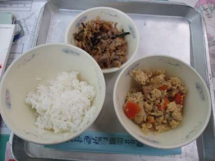 今日の給食は沖縄の郷土料理でした。厚揚げのチャンプルーも,昆布の入ったクーブイリチーもとてもおいしそうに食べている子どもたちでした。
