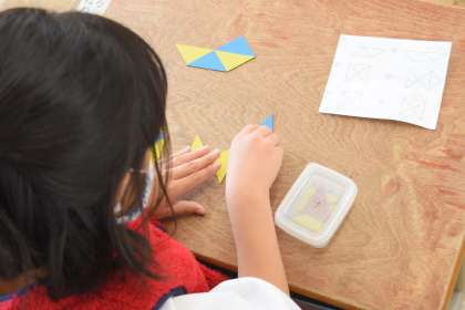 さんかくの かたちを つかって さまざまな かたちを つくりました。