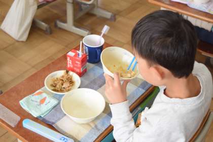 きょうの きゅうしょくのこんだては おきなわりょうりの クーブイリチーと