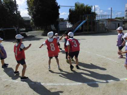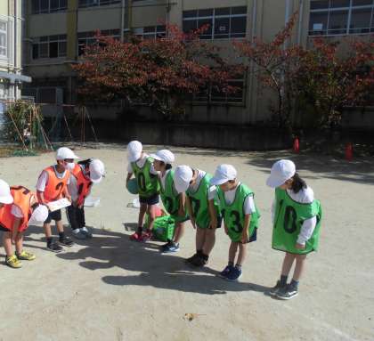 ゲームのはじめとおわりのあいさつをみんなでしっかりしたり,とくてんをただしくいれることもたいせつながくしゅうです。ルールになれ,じぶんたちでゲームがすすめられるようになってきました。