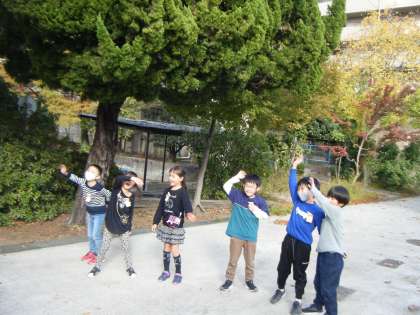 きょうは 天きもいいので そとにでて おんどくげきを しました。