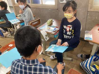 お道具箱セットをもらった子は,とても喜んでいました。今日の宿題でDo you have?の表現でおうちの方に尋ねてみようと伝えています。また答えていただけたらと思います。