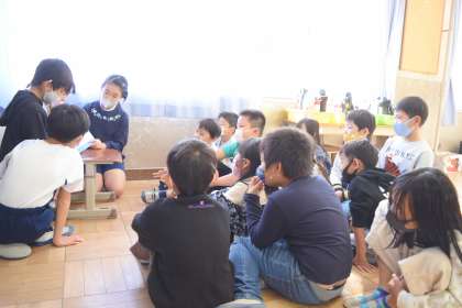 子どもたちは きょうみしんしんで きいています。