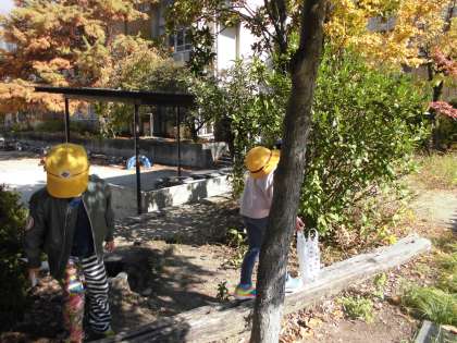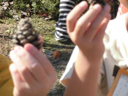 がっこうであきみつけをしました。あかやきいろにいろづいたはっぱや,たくさんのどんぐりやまつぼっくりをみつけることができました。あきばれのもと,すがすがしいくうきをかんじながらたのしいじかんをすごすことができました。
