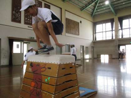 5年生の体育では,跳び箱運動にチャレンジしています。