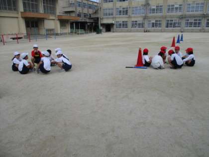 今日の体育で3回目の学習となりました。今日は,試合の途中で,チームでの作戦タイムをとったり,試合後にチームのよかったところを話し合う時間をとったりしました。「負けたけど,みんながよく走っていた。」「〇〇さんが,すごく打ってた。」など,良さを認め合っていました。