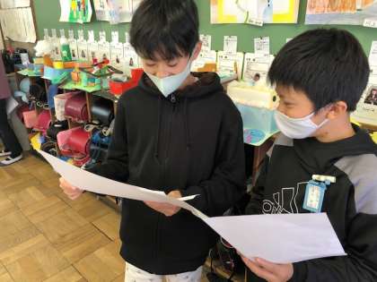 まとめた後は,お互いに説明し合いました。「どうして江戸幕府の政治は安定したのだろうか。」各々,自分のまとめを根拠に話し合いました。自分と違う思考ツールをつかっている友達から新しい気付きを得たり,同じツールをつかっている友達にアドバイスをもらって付け足したりしている姿も見られました。