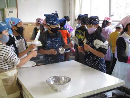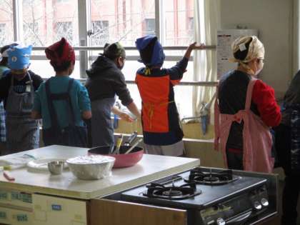まずは,初めての調理室でしっかりと身支度を整え,使う食器を洗うなど準備をしました。