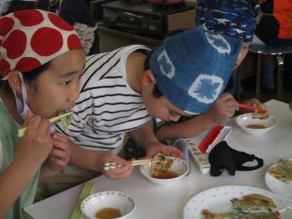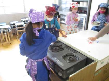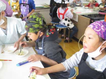 できたものは,みんなでおいしくいただきました。「おいしい!!」とみんなとても喜んでいました。