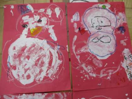 図工 「雪だるまの絵」