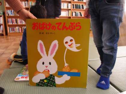 2冊も 大型絵本の読み聞かせを してもらいました。