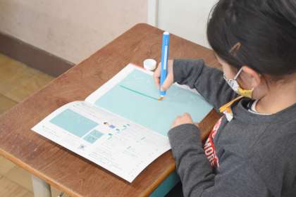 しょしゃの 学しゅうで 水しょを しました。