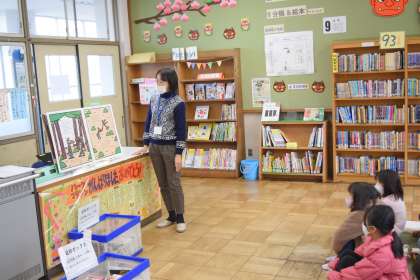 としょかんで本を 3さつかりたり よみきかせを してもらったり
